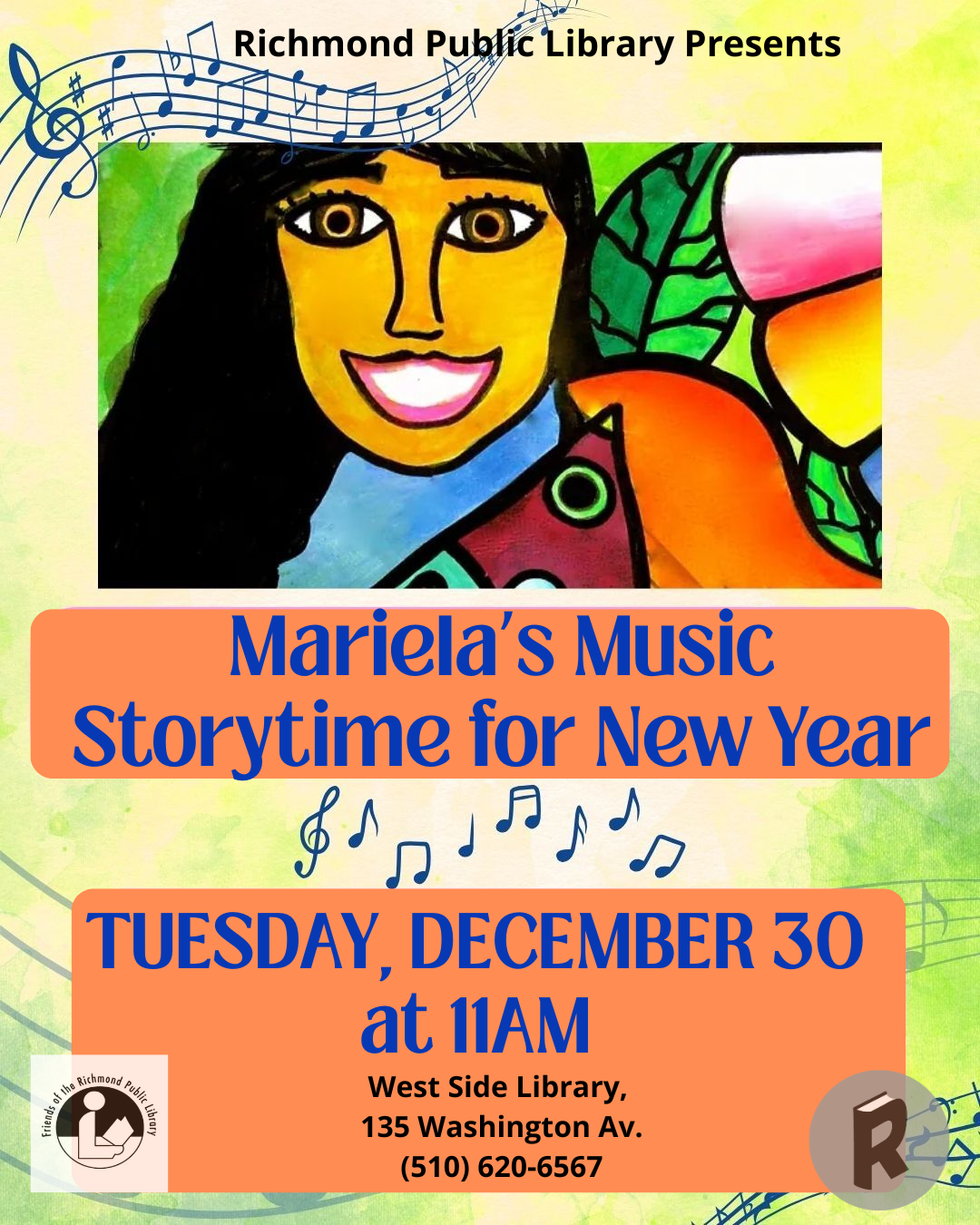 Enjoy a special Tuesday story time with local artist and music teacher, Mariela Herrera. Sing,... |